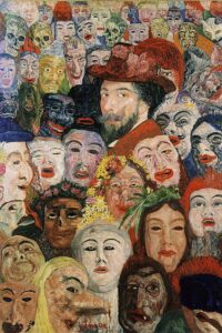 Or, ce que montre Ensor, ce sont les obsessions de notre mémoire, ces résidus, qu’elle renvoie inconsciemment face à nos peurs profondes et dissimulées dans des figures en distorsion de nous-même.
